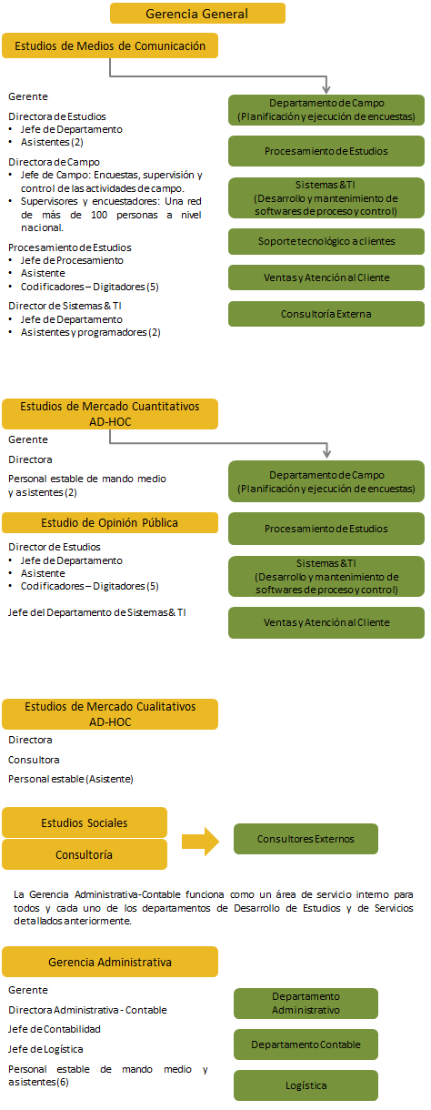 CPI está organizada en función a las áreas de desarrollo de estudios y de servicios que ofrece a sus clientes, las cuales operan de manera independiente con su respectiva infraestructura profesional y técnica.